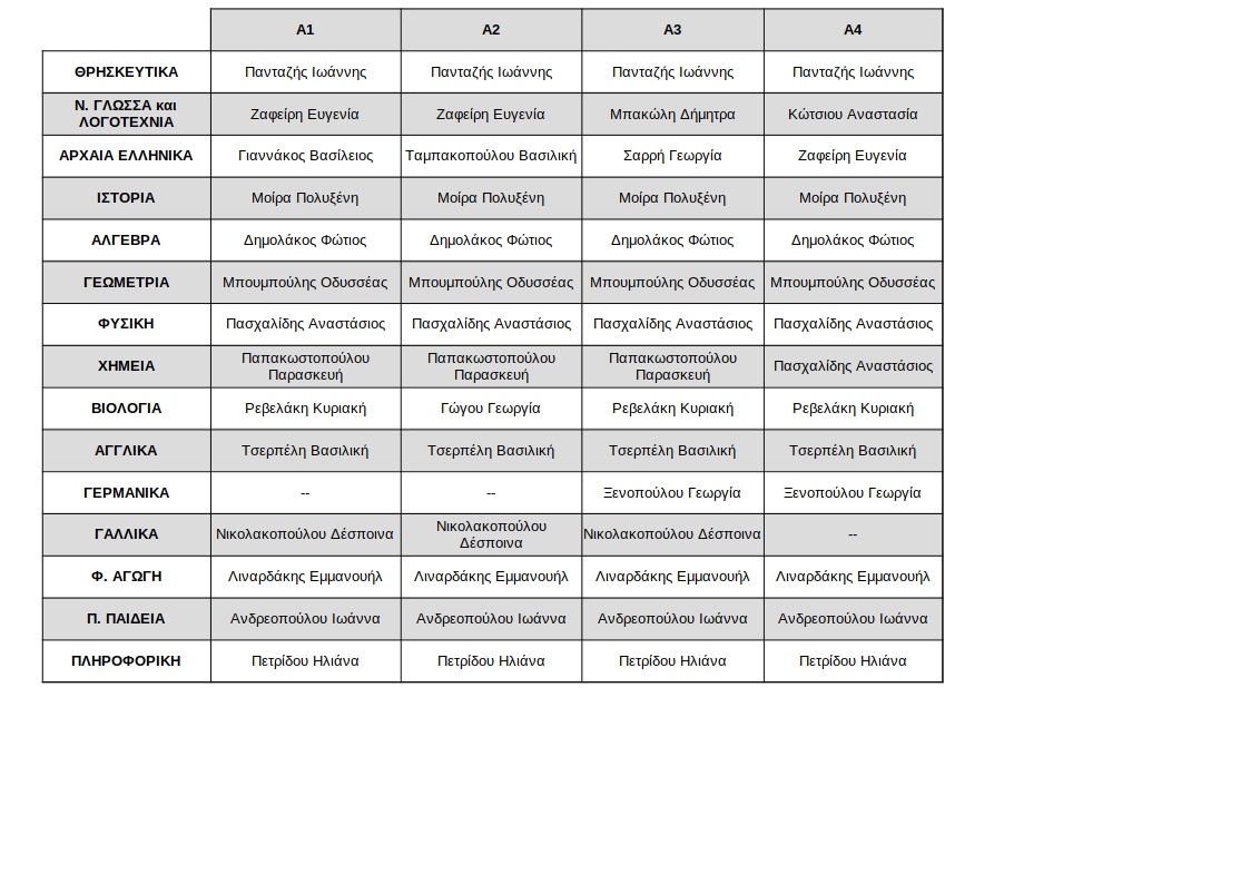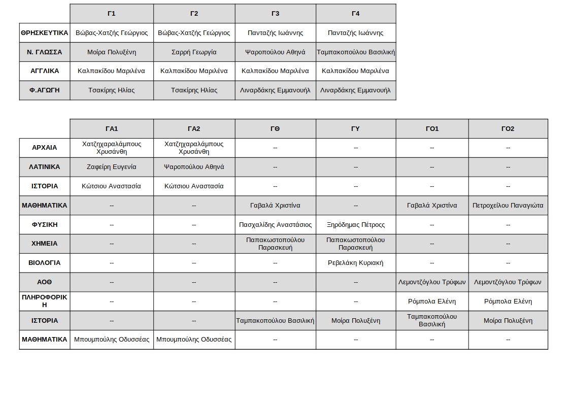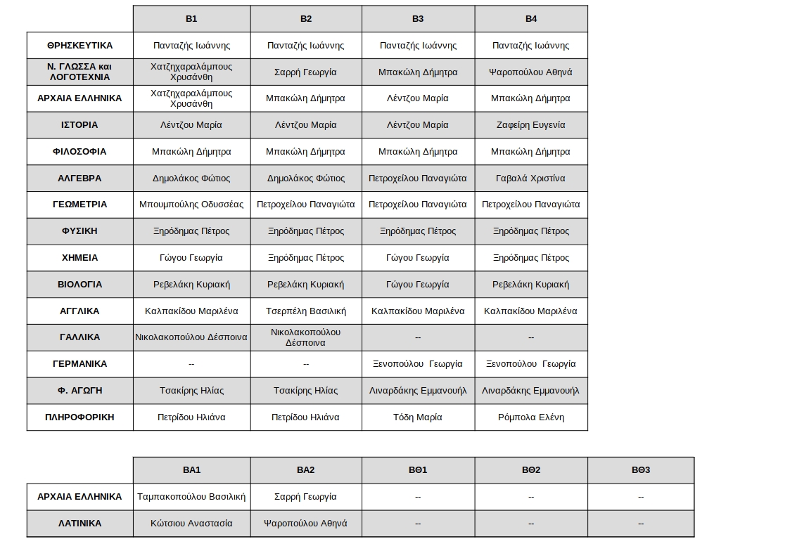 Διδάσκοντες ανά τμήμα και μάθημα.