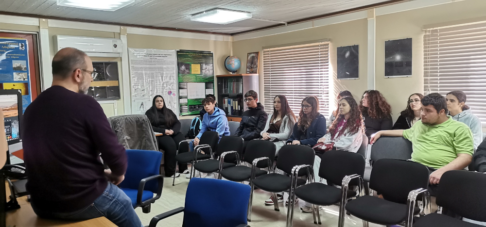 Σωτήρης: "Η παρουσίαση στο Φυσικό ήταν κάτι διαφορετικό αλλά και πολύ ενημερωτικό. Ο κ. Γαζέας, καθηγητής του πανεπιστημίου, μας ειχε ετοιμάσει μια αναλυτική παρουσίαση για τον γαλαξία μας και για τον τρόπο με τον οποίο τον παρατηρούμε. Ακόμα είχαμε την ευκαιρία να βρεθούμε μέσα στον θόλο του αστεροσκοπείου και να δούμε από κοντά ένα από το πιο σύγχρονα τηλεσκόπια. Τέλος, το πιο σημαντικό ήταν πως ο καθηγητής απάντησε σε κάθε μας ερώτηση και μας εξήγησε από το μηδέν ό,τι δεν γνωρίζαμε ή δεν καταλαβαίναμε."
